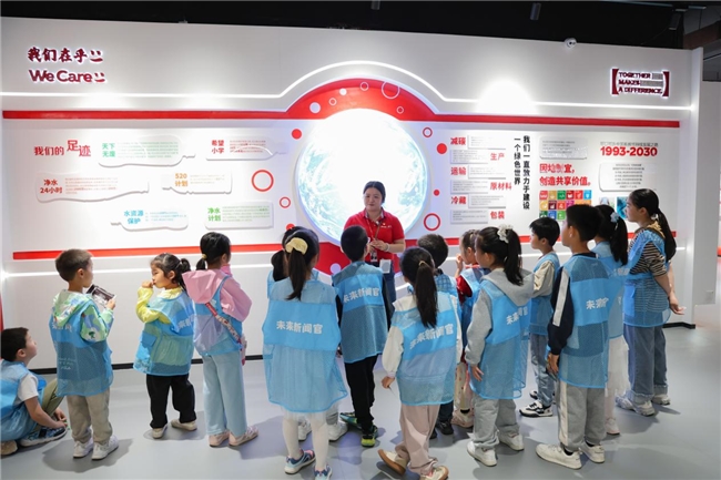 随后,大家走进可口可乐博物馆,开启一场奇妙的品牌探索与绿色之旅。在讲解员的生动讲解下,小记者们和家长们一同回望可口可乐的百年品牌历程,深入解读企业坚守的可持续发展理念,近距离观察饮料生产全流程,真切感受工业科技与绿色环保的完美融合。
